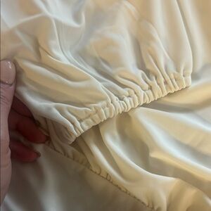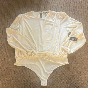 Stylish cream bodysuit with long sleeves. Perfect for a chic look. NWT ruched sleeves and detailing around the neck. From a smoke free pet free home willing to consider bundles and offers