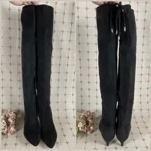 Sam Edelman “Kristie” Black Faux Suede Over the Knee Boots Low Heel PreLoved 8