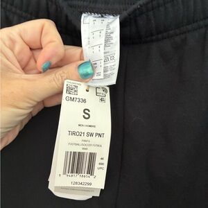 Experience comfort and style with these Adidas sweatpants, featuring a sleek black design accented by the iconic white stripes. The elastic waistband with a drawstring ensures a secure fit, while the tapered legs offer a modern silhouette. Perfect for both casual wear and athletic activities, these joggers are crafted from lightweight material for optimal performance.