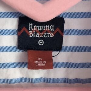 This Rowing Blazers button-down shirt features a striking combination of blue and pink hues, creating a bold and stylish look. Crafted from lightweight fabric, it offers comfort and sophistication, making it a standout piece in any wardrobe.