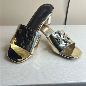 Tory Burch Sandals | Tory Burch Ines Gold Metallic Mules Size 9