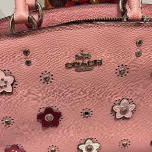 Chic and stylish, this Coach bag features a beautiful pink floral design. Perfect for adding a touch of elegance to any outfit.