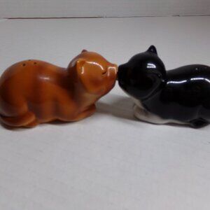 Cat Salt and Pepper Shakers Black Orange Ceramic Magnetic Noses