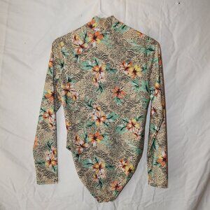Fashionnova Tropical Floral Front Zip Rash Guard One-Piece Swimsuit NWT XL