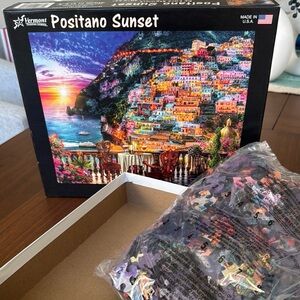 Experience the vibrant beauty of Italy with the Positano Sunset 1000 Piece Puzzle. Featuring a stunning array of colors, this puzzle is perfect for travelers, puzzle enthusiasts and art lovers. Pieces are oversized for a 1000 pc puzzle, which can be a great benefit for identifying connections! Brand new and factory sealed in open box.