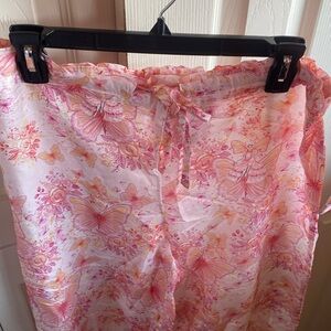 Papielle NWT Butterfly Silk blend print, Front button close, Collared long sleeve, chest pocket, drawstring waistband bottom pajama set