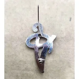 Cursive Rhinestone Initial Letter "A" Silver Tone Brooch Pin Script