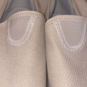Comfortable beige slip-on sneakers. Perfect for casual wear. These have been worn. These are not perfect. There are slight call outs on toes.They are pretty light weight slip on shoes.