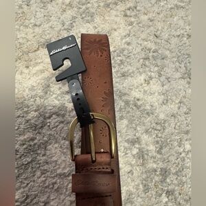 NWT Eddie Bauer Women's Leather Belt (Floral Tooled - Tan) - Size S