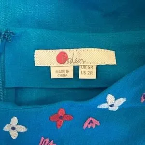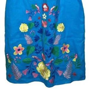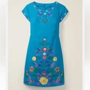Boden Laura Linen Blue Lagoon Shift Dress Floral Embroidered Size 2R