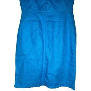 Boden Laura Linen Blue Lagoon Shift Dress Floral Embroidered Cap Sleeves Pocket, Size 2 Regular