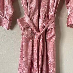 Vintage Victoria's Secret Gold Label Rose Pink Satin Floral Full Length Robe