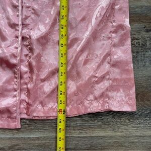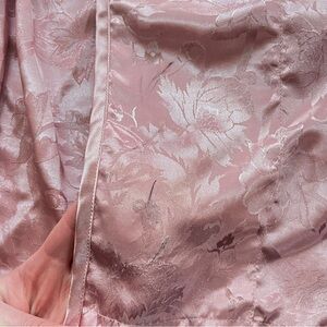 • Rose pink long satin robe with floral paisley design