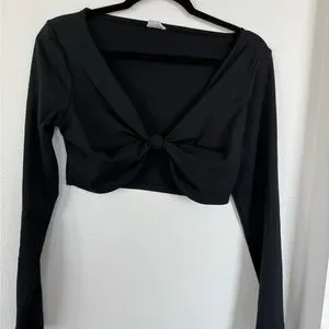 Cotton On Black Long Sleeve Tie Front Crop Blouse