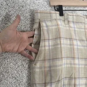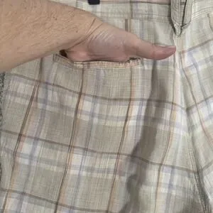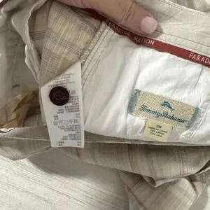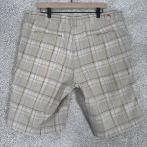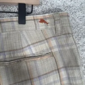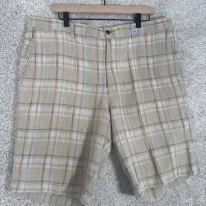 Tommy Bahama Silk Linen Shorts Mens 38 Tan Beige Plaid 10" Inseam