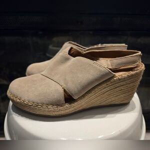 Never worn Born sand color suede espadrilles with woven heel. Velcro straps for easy adjustments. No original box.
