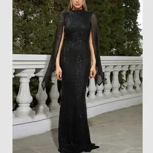 Luxe sequins mermaid hem bodycon formal evening black tie gown dress