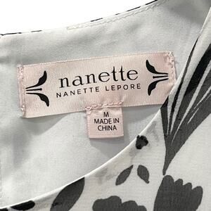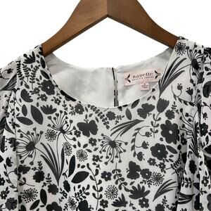 Nanette Lepore Womens Black White Floral Print Short Sleeve Blouse Size Medium