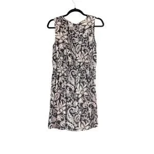 Ann Taylor Loft Dress Navy White Paisley Elastic Waist Rayon Light/Airy Womens S