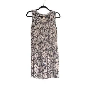 Ann Taylor Loft Navy white paisley dress elastic waist rayon light & airy boho beach sleeveless
