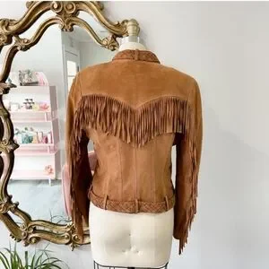 super soft goat leather fringe festival jacket. suede in good vintage condition. slight blemishes. not noticeable to me when worn, suede just looks better with age! final sale price