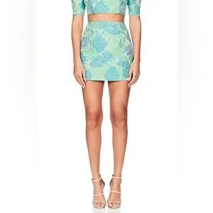 Classic mini skirt made in floral, woven jacquard. Invisible zipper at centre back featuring rose gold Nookie puller.