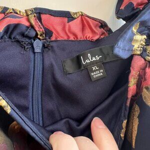 Lulus Pop the Bottle Navy Blue Floral Jacquard Ruffled Mini Dress - Size XL