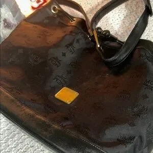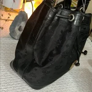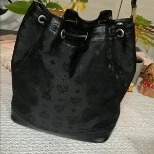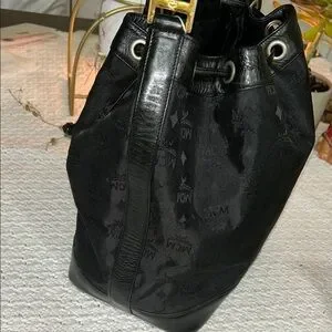 Vintage MCM Black Visetos Drawstring Shoulder Bag – Designed by Michael Cromer