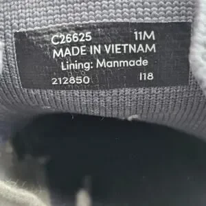 Shoes have some tread wear.