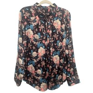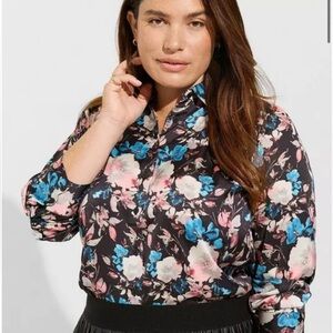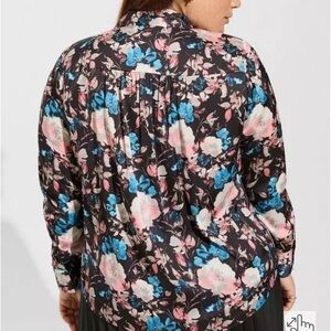 TORRID Madison Long Sleeve Floral Satin Black Button Up Shirt size 1 (14-16)