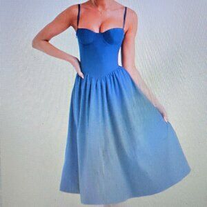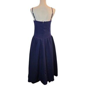 Women's Midi Dress W/ Voluminous Skirt, Adjustable Straps & Pockets Sz: M Navy
