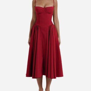 Say hello to this dreamy dress, the ultra feminine midi dress is made in soft polyester fabric that feels as good as it looks. This dress is designed with an underwired bust, waist cinching, side pockets, adjustable straps, zippered back and a pretty voluminous skirt..