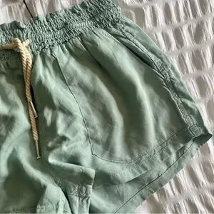Embrace a chic and comfortable style with these Love Tree high waist shorts in a refreshing green hue. Designed with a relaxed fit and an elastic waistband, they offer a breezy feel perfect for warm weather. The lightweight material and mid-thigh length make them an ideal choice for casual outings. Large pockets.