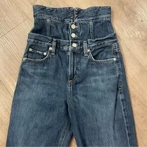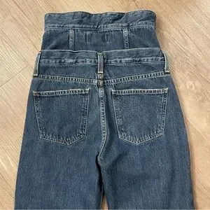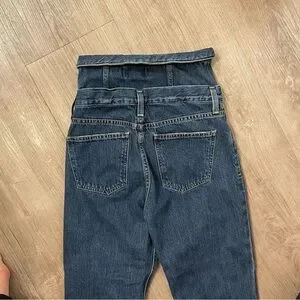Agolde Vanna Corset Jeans High Waist Belted Foldover Cotton Denim in Blue