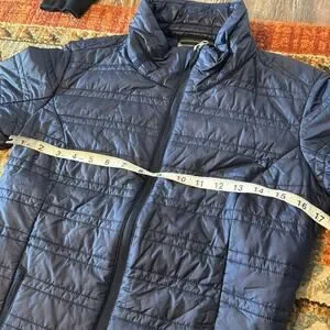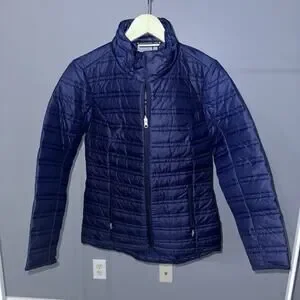 No flaws. Color is navy. All zippers work. Very warm and lightweight ! Any questions? Pleasee feel free to ask!