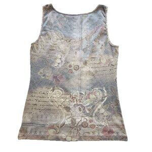 There is a small pinhole in the belly area of the shirt, see last two photos. This vintage tank top from the 90s is a true treasure! The all-over graphic design features a blend of angel, butterfly, and fairy characters, making it perfect for those who love unique and one-of-a-kind clothing. The tank top is made of a lightweight and breathable cotton blend fabric, with contrasting trim and beaded accents for added flair.