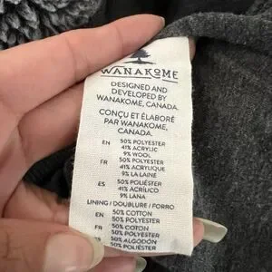 Wanakome Sherpa Vest Womens Medium Heather Gray Wool Asymmetrical Zip Hooded