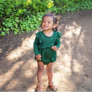 The one piece Bubble Romper bodysuit features single snap closure at back of neck, and triple snaps at bottom for ease of getting on and off.
