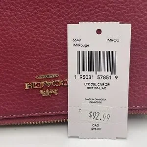 Coach Double Corner Zip Wallet Wristlet IM/Rouge NWT