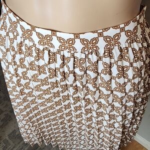 J. Crew Accordion Pleated Mini Lined In A Mustard Brown And Cream Print.