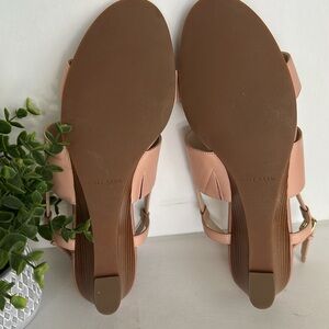 Cole Haan Sandals Women Pink Leather Slingback Wedge Buckle