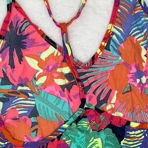 🌺 Color: Tropical multicolor floral (bold pinks, orange, aqua, navy)
