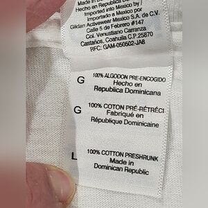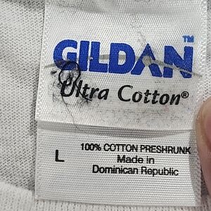 Stylish white graphic t-shirt featuring a bold design. Perfect for casual wear. Size Large