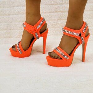 Genius Neon Orange Neoprene High Heel Platform Harness Shoes