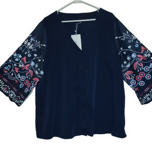 Bloomchic CHIC Top Blouse NAVY BLUE Floral Sleeves SIZE 18-20 Lightweight NWT