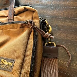 Selling a used button in great condition a Filson Dryden Briefcase. The bag is an excellent condition, holds up to a 17 inch laptop and all zippers and pulls are in excellent condition.