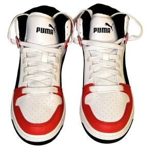 PUMA YOUTH RED/WHITE/BLACK HIGH TOP SNEAKERS SIZE 5.5C SOFT FOAM INSOLE