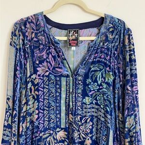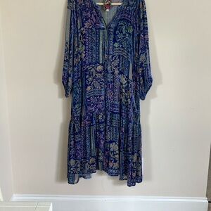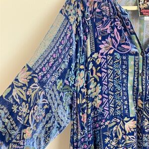 This elegant floral blue midi dress is perfect for any occasion. The vibrant blue color and intricate floral patterns make it a standout piece in your wardrobe.