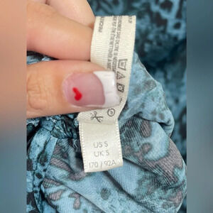 Free People Intimately Day to Night Printed Slip Dress Indigo Combo Women’s Size Small. Has adjustable straps. No lining. 100% Polyester. Machine washable. Has a tiny hole near the top of the neckline on the back (pls see pic).
