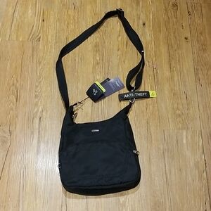Stay secure with this sleek black anti-theft crossbody bag. Perfect for everyday use.